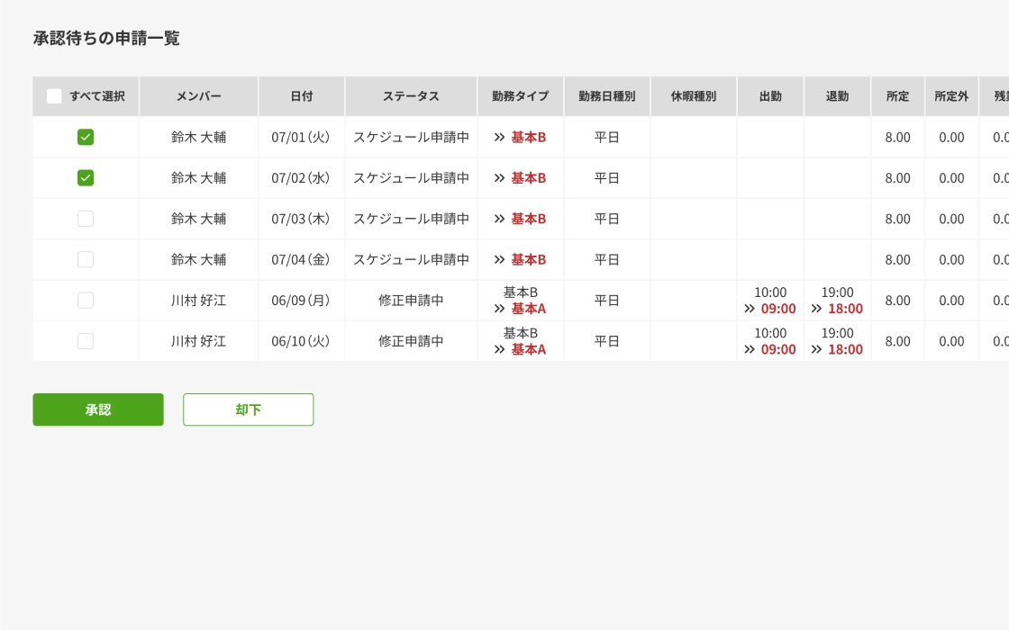 シフトや修正の申請をオンラインで承認。業務をシンプル化し、管理者の負担を軽減します。