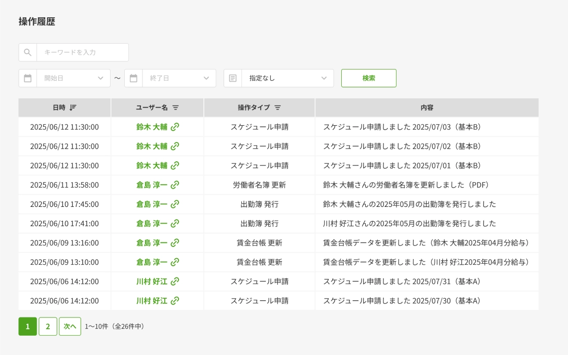 誰がいつ操作したかを記録して可視化。透明性を確保し、トラブルや不正の防止に繋がります。